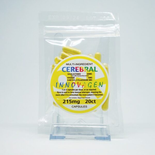Cerebral – Kavalactone extract 200mg, Piperine 10mg, N-Methyl-Cyclazodone 5mg, 20 capsules – stack to improve your mood and reduce anxiety.